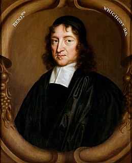 Benjamin Whichcote was an English Establishment and Puritan divine, 19th Provost of King's College, Cambridge and leader of the Cambridge Platonists. He held that man is the "child of reason" and so not completely depraved by nature, as Puritans held. He also argued for religious toleration.