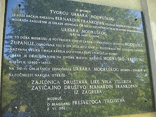 Bernardin Frankopan (1453–1529) was a Croatian nobleman and diplomat, a member of the influential Frankopan noble family of Croatia. As one of the wealthiest and most distinguished aristocrats in the kingdom in his day, he had one of the leading roles in mounting defences of Croatian statehood against the Ottoman expansion.