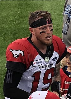 Bo Levi Mitchell is a professional Canadian football quarterback for the Calgary Stampeders of the Canadian Football League (CFL). He signed with the Stampeders in 2012 and became the team's starting quarterback for the 2014 season, setting a number of club and league records including best record for a first time starting quarterback in league history. He won the 102nd Grey Cup in 2014, the CFL's Most Outstanding Player Award in 2016 and 2018, and the 106th Grey Cup in 2018. With his second Grey Cup win as starter, he became the first QB to start and win multiple Grey Cup games with the Stampeders organization.