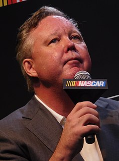 Brian Zachary France is an American businessman and the former CEO and Chairman of NASCAR. He served in the post from 2003 to 2018, following his grandfather Bill France Sr. and father Bill Jr., in the executive position. In 2019, France founded Silver Falcon Capital, Inc. and became CEO of the private investing firm.
