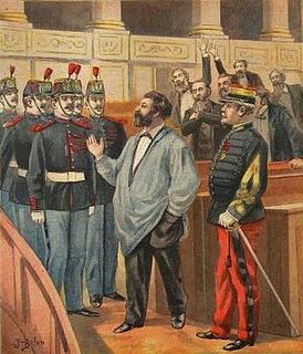 Christophe Thivrier was a French politician of working class origins who was the first Socialist mayor in France, and deputy of Allier from 1889 to 1895. At this time the industrialists of France were using dismissals and other forms of repression in an attempt to stamp out socialism, and workers were responding with strikes. Thivrier was uncompromising in his socialist principles, and was known as the "deputé en blouse" for wearing his blue worker's smock in the Assembly to the outrage of the bourgeois members.