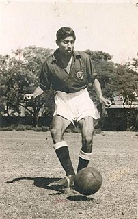 Subimal Goswami was an Indian professional footballer and first-class cricketer. As footballer, he played as a striker or winger, captained both the Mohun Bagan club and the Indian national team. He is a former Sheriff of Kolkata. Popularly known as Chuni Goswami, he scored nine goals in 30 international appearances. He was an Olympian, represented India national team at the 1960 Summer Olympics. He also led the team to achieve the gold medal at the 1962 Asian Games and earn the runners-up position at the 1964 AFC Asian Cup.
