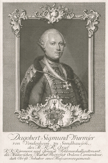 Dagobert Sigismund, Count von Wurmser was an Austrian field marshal during the French Revolutionary Wars. Although he fought in the Seven Years' War, the War of the Bavarian Succession, and mounted several successful campaigns in the Rhineland in the initial years of the French Revolutionary Wars, he is probably most remembered for his unsuccessful operations against Napoleon Bonaparte during the 1796 campaign in Italy.