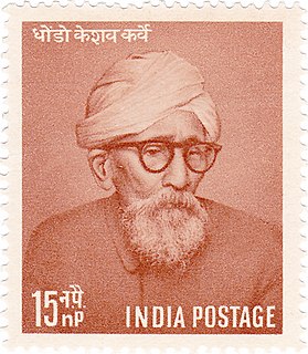 Dhondo Keshav Karve, popularly known as Maharshi Karve, was a social reformer in India in the field of women's welfare He advocated widow remarriage and he himself married a widow. In his honour, Karvenagar in Pune was named after him & Queen's Road in Mumbai (Bombay) was renamed to Maharshi Karve Road. Karve was a pioneer in promoting widows' education. The Government of India awarded him with the highest civilian award, the Bharat Ratna, in 1958, the year of his 100th birthday.