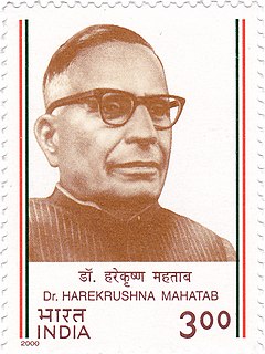 Harekrushna Mahatab was the leader of the Indian National Congress, a notable figure in the Indian independence movement and the Chief Minister of Odisha from 1946 to 1950 and again from 1956 to 1961. He was popularly known by the sobriquet "Utkal Keshari".