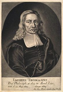 Jakob Thomasius fue un jurista, teólogo y filósofo alemán, considerado uno de los fundadores del Derecho positivo y de la Historia de la Filosofía. Pertenecía a una familia de profesores universitarios, entre los que se encuentran su hermano Johann y, el que sería el miembro más conocido de la familia, su hijo Christian Thomasius. Estudió en la Universidad de Leipzig y de Wittenberg, donde se formó en la tradición escolástica ortodoxa.
