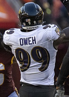 Odafe Jayson Oweh is an American football outside linebacker for the Baltimore Ravens of the National Football League (NFL). He played college football at Penn State.