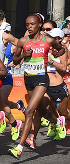 Jemima Jelagat Sumgong es una corredora de larga distancia keniana y campeona olímpica. Ha ganado las maratones de Londres, Róterdam y Las Vegas, además de finalizar en segundo lugar en Boston, Chicago y Nueva York. Su mejor marca personal es de 2:20:48. En los Juegos Olímpicos de Río de Janeiro 2016 obtuvo el oro en la maratón con un tiempo de 2:24:04 horas. Sumgong se convirtió en la primera mujer keniana en ganar ese evento desde que fue introducido al programa olímpico en 1984.