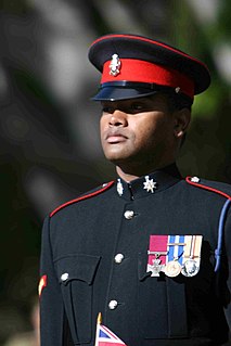 Colour Sergeant Johnson Gideon Beharry, VC, COG is a British Army soldier who, on 18 March 2005, was awarded the Victoria Cross, the highest military decoration for valour in the British and Commonwealth armed forces, for saving members of his unit, the 1st Battalion Princess of Wales's Royal Regiment, from ambushes on 1 May and again on 11 June 2004 at Al-Amarah, Iraq. He sustained serious head injuries in the latter engagement. Beharry was formally invested with the Victoria Cross by Queen Elizabeth II on 27 April 2005.