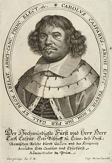 Karl Kaspar von der Leyen was Archbishop-Elector of Trier and a Prince-Elector of the Holy Roman Empire from 1652 to 1676.