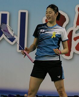 Kim Hyo-min is a South Korean badminton player. Although she now specializes in singles, Kim's first big result in a major international junior event came when she and fellow singles specialist Lee Min-ji reached the girls' doubles semi-finals at the 2012 World Junior Championships. The following year, she was undefeated in South Korea's run to winning the Suhandinata Cup at the 2013 World Junior Championships. In 2014, Kim beat Sun Yu to reach the final of the 2014 Macau Open Grand Prix Gold, and she became the runner-up after defeated by P. V. Sindhu in the final round.