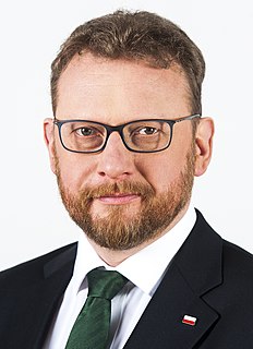 Łukasz Jan Szumowski is a Polish cardiologist, from 9 January 2018 to 20 August 2020, Minister of Health. Member of the IX Sejm, representing the Płock constituency, elected from the lists of Law and Justice.
