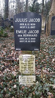 Mathilde Jacob was a German typist and translator who during the First World War became politically involved, working with the anti-war Spartacus League and as a founder member of the German Communist Party. She came to politics through her work for Rosa Luxemburg whose friend and close confidant she became. Although Mathilde Jacob continued to be politically engaged in the 1920s, her greater contribution to history comes from her having smuggled Luxemburg's letters and documents out of Luxemburg's prison cell during her friend's various incarcerations during the 1914–1918 war. She then preserved much of Luxemburg's written legacy after the latter's murder.