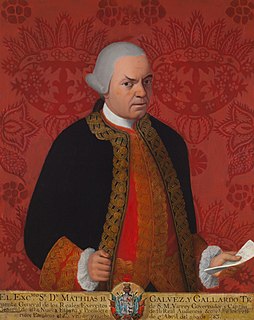 Matías de Gálvez y Gallardo fue un militar y político español del siglo xviii. Enviado por su hermano, José de Gálvez, marqués de Sonora, como inspector de milicias a la Capitanía General de Guatemala, llegó a ser el capitán general, tras la salida de Martín de Mayorga, quien fue nombrado virrey de la Nueva España. Tras una efectiva labor al frente del gobierno guatemalteco, que incluyó la reconquista de la Fortaleza de San Fernando de manos de los ingleses y la construcción de la Nueva Guatemala de la Asunción, fue nombrado virrey de la Nueva España, nuevamente en sustitución de Mayorga.