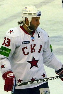 Maxim Sergeyevich Afinogenov is a Russian professional ice hockey player who is currently an unrestricted free agent. He most recently played for Dynamo Moscow of the Kontinental Hockey League (KHL). Known for his skating speed, he was drafted by the National Hockey League (NHL)'s Buffalo Sabres in the third round, 69th overall, in 1997 and played nine seasons with the club. He then played one season with the Atlanta Thrashers before signing with SKA Saint Petersburg in 2010.