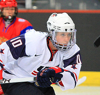 Meghan Duggan is an American former ice hockey forward who played for the United States at the 2010 Winter Olympics and 2014 Winter Olympics, winning two silver medals; she was the captain of the U.S. team at the 2018 Winter Olympics, where she won a gold medal. She also represented the United States at eight Women's World Championships, capturing seven gold medals and one silver medal. Duggan played collegiate hockey with the Wisconsin Badgers between 2006 and 2011. After her senior season (2010–11), Duggan was named the winner of the Patty Kazmaier Award, presented annually to the top women's ice hockey player in the National Collegiate Athletic Association (NCAA). After her career at Wisconsin, Duggan was the team's all-time leading scorer. She was drafted 8th overall by the Boston Blades in the 2011 CWHL Draft.