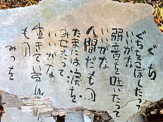 Mitsuo Aida fue un poeta japonés y calígrafo conocido como El Poeta de zen. Su trabajo estuvo influido por el budismo zen y lo utilizó para sus conocidos trabajos, Ningen damono, Okagesan, e Inochi ippai.