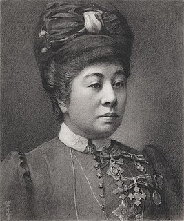 Nabeshima Nagako (鍋島栄子) (1855–1941) was a feature of Japanese high society from the Meiji period to the early Shōwa era. Daughter of kuge Hirohashi Taneyasu, in April 1881 she married Nabeshima Naohiro, eleventh and final daimyō of the Saga Domain, in Italy, where he was performing official duties. Nagako served as secretary and chair of the Volunteer Nurses Association (篤志看護婦人会) of the Japanese Red Cross Society from 1887 to 1936 as well as president of the Oriental Women's Association (東洋婦人会).