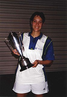 Sandra Dimbour is a former French badminton player from Racing Club de France, Paris. Join the INSEP in 1989, Dimbour competed in three consecutive Summer Olympics in 1992, 1996, and 2000. She had won 15 times National Championships, 8 in the singles, 5 in the women's doubles, and 2 in the mixed doubles event. After retirement from the international tournament, she started a career as a badminton coach. Dimbour was a member of the French National Olympic and Sports Committee from 2002-2009.