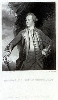 Admiral Sir George Bowyer, 5th and 1st Baronet was a Royal Navy officer and politician of the eighteenth century. He participated in the Seven Years' War, fighting at the Battle of Minorca, Raid on Rochefort, and Siege of Louisbourg as a junior officer. Promoted to commander in 1761 his first command, the cutter HMS Swift, was captured by the French in June of the following year. Acquitted by his subsequent court martial, Bowyer was promoted to post-captain in October 1762.