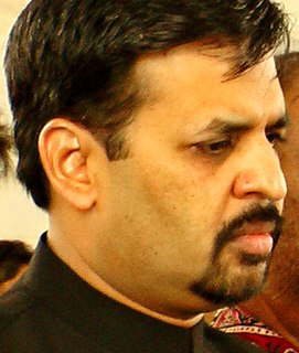 Syed Mustafa Kamal is a Pakistani politician who is founder and current chairman of Pak Sarzameen Party. He was the senator in the Senate of Pakistan and served as the mayor of Pakistan's largest city, Karachi.