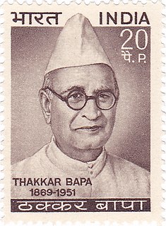 Amritlal Vithaldas Thakkar, popularly known as Thakkar Bapa was an Indian social worker who worked for upliftment of tribal people in Gujarat state in India. He became a member of the Servants of India Society founded by Gopal Krishna Gokhale in 1905. In 1922, he founded the Bhil Seva Mandal. Later, he became the general secretary of the Harijan Sevak Sangh founded by Mahatma Gandhi in 1932. The Bharatiya Adimjati Sevak Sangh was founded on 24 October 1948 on his initiative. When Indian constitution was in process, Kenvi visited remotest and most difficult parts of India and conducted probe into the situation of tribal and Harijan people. He added valuable inputs in the process of constitution. Mahatma Gandhi would call him 'Bapa'.