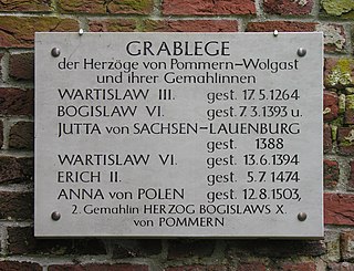 Wartislaw VI of Pomerania was a member of the House of Griffins. From 1365 to 1377, he ruled Pomerania-Wolgast jointly with his brother Bogislaw VI. From 1377 until his death, he was the sole ruler of Pomerania-Barth.