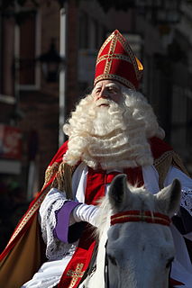 Sinterklaas or Sint-Nicolaas is a legendary figure based on Saint Nicholas, patron saint of children. Other names for the figure include De Sint, De Goede Sint, and De Goedheiligman in Dutch; Sanikolas in Papiamento; Saint Nicolas in French; Sinteklaas in West Frisian; Sinterklaos in Limburgs; Saint-Nikloi in West Flemish; Kleeschen and Zinniklos in Luxembourgish; Sankt Nikolaus or Nikolaus in German; and Sint Nicholas in Afrikaans.